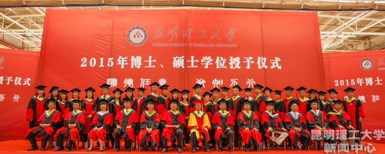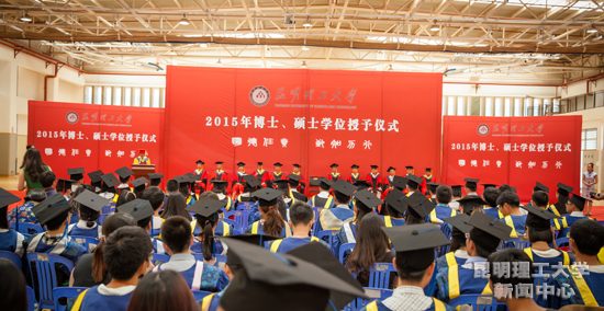 6月10日下午,我校2015年博士、硕士研究生学位授予仪式在呈贡校区体育教学楼三楼篮球馆隆重举行。我校副校长、校学位评定委员会副主席、博士生导师程赫明教授出席仪式并讲话。学位授予仪式由校长助理、研究生院院长、校学位评定委员会委员束洪春主持。
