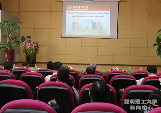 6月10日下午,“南亚东南亚国家驻西南地区领事官员云南行”活动来到我校,泰王国驻昆明总领事馆、斯里兰卡民主社会主义共和国驻成都领事馆、巴基斯坦伊斯兰共和国驻华大使馆、柬埔寨王国驻昆明总领事馆、缅甸联邦共和国驻昆明总领馆、越南社会主义共和国驻昆明总领事馆、老挝人民民主共和国驻昆明总领事馆、马来西亚驻昆明总领事馆等领事一行到我校参观访问。副校长王华出席在呈贡校区后勤一号楼召开的座谈会,省科技厅相关部门负责人,我校校办、科技处、外事处、科技产业公司等部门负责人参加座谈。