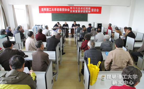 4月13日上午,我校老教授协会在莲华校区组织召开了学习习近平总书记视察云南重要讲话精神座谈会,座谈会上,戴永年、胥留得、阎秀冬、唐荣、戴清明、李俊昌、罗明河、马正纲等8位老教授做主题发言。协会16个会员小组的52位代表参加了座谈会。