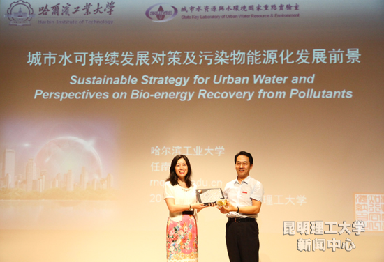 讲座期间,哈尔滨工业大学副校长、中国工程院院士任南琪受聘为我校特聘教授,张英杰校长为其颁发证书并佩戴校徽。