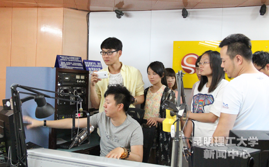 5月16日下午,校党委宣传部组织校广播台及学生电视台的学生干部一行20余人赴昆明市广播电视台进行业务参观学习。昆明广播电视台汽车广播郑良欢总监接待了来访师生并在汽车广播工作室进行了座谈。