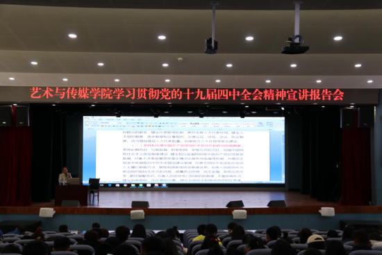 12月12日下午,华体会平台艺术与传媒学院在小剧场举行“学习贯彻党的十九届四中全会精神”宣讲会。华体会平台“学习贯彻党的十九届四中全会精神”宣讲员、《华体会平台学报》编辑部徐绍华教授面向全院教师和学生党员宣讲十九届四中全会精神。