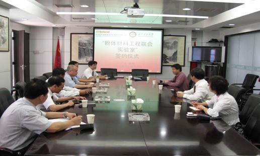 10月17日下午,我校和深圳市中金岭南有色金属股份有限公司粉体材料工程联合实验室签约及揭牌仪式在深圳市中金岭南有色金属股份有限公司举行,深圳市中金岭南有色金属股份有限公司总裁张水鉴,公司党委书记郭勇,副总经理刘侦德,我校副校长王华、材冶学院院长施哲,科技处副处长马琨,粉体材料工程联合实验室主任蔡晓兰教授等出席签约揭牌仪式。