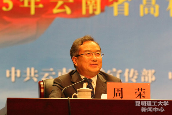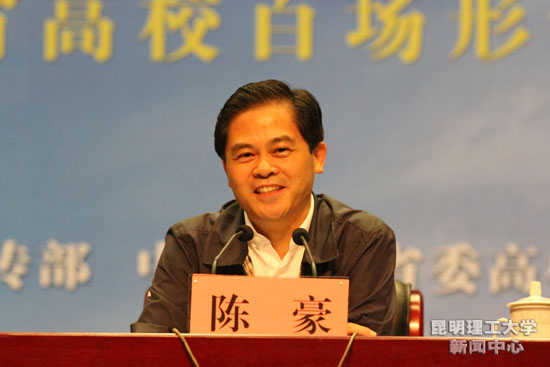 陈豪省长充分肯定了高校在推动云南经济社会发展中起到的重要作用,并对全省各高校提出三点希望:一要坚持产学研结合,为云南跨越式发展服务。推进产学研结合既是高等院校自身发展的需要,也是服务于地方发展的迫切要求。希望各高校进一步发挥优势,挖掘潜力,主动担当,积极探索产学研合作模式,激发创新实践,紧紧围绕我省产业发展需要,结合我省大力培育的生物医药、新材料、先进装备制造、电子信息、石化等支柱产业,加强前瞻性、关键性技术研发,引领新兴产业发展,推动全省经济和产业结构向“两型三化”转型升级。二要发挥高校的科研优势,助推云南实施创新驱动。充分利用高校在科技、人才、学科等方面的优势,与省内外的大型企业建立战略联盟,在关键技术研发、创新人才培养等方面开展广泛合作。三要立德树人,为云南培养大批高素质人才。积极主动承担起培养经济社会发展需要的高素质人才的使命,坚定不移贯彻党的教育方针,坚持社会主义办学方向,把培养中国特色社会主义事业建设者和可靠接班人作为根本任务贯彻始终,落实到高校工作的各领域、各方面。