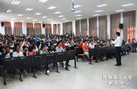 “航空是指载人或不载人的飞行器在地球大气层中的航行活动,必须具备空气介质。”“航空有民用航空和军用航空之分。”“航空是高度综合的现代科学技术。”9月14日下午,航空学院首届新生迎来开学第一课,易健宏副校长为200名新生讲授专业导论课。课后,易健宏副校长与新生代表及来自新华网云南频道、中新社、云南网、春城晚报等媒体的记者座谈,介绍学院今年的招生情况、生源质量,畅聊云南航空业的未来、学院的发展目标。