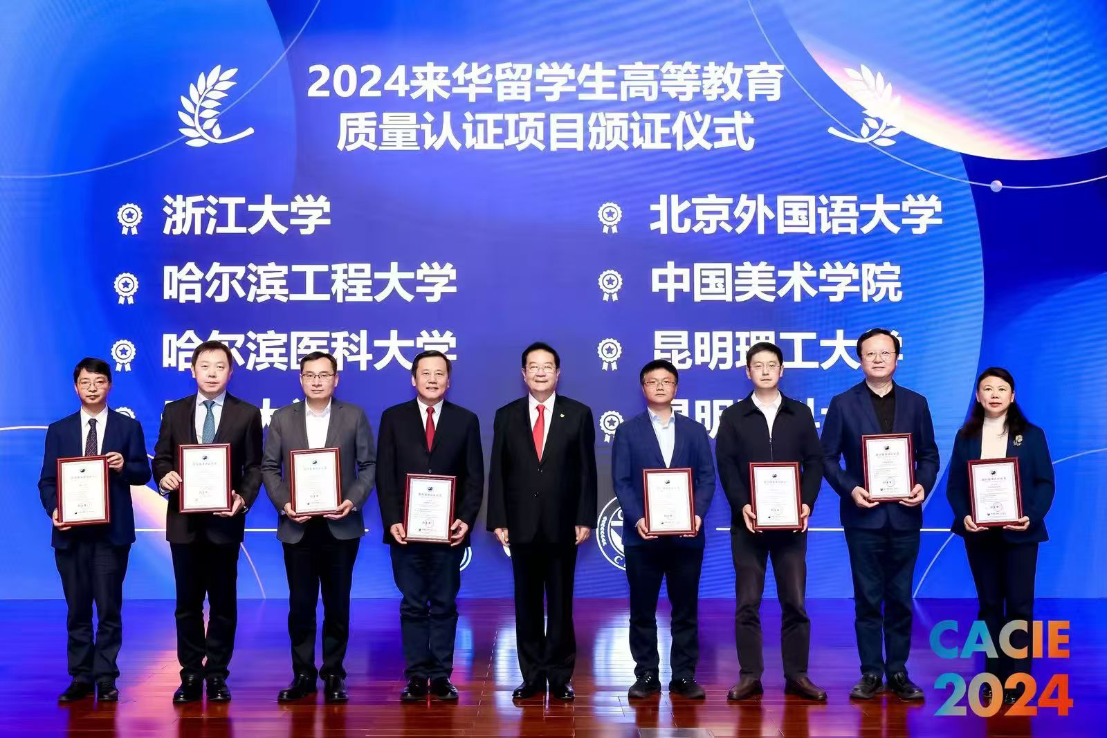 10月31日,第25届中国国际教育年会暨中国国际教育展在北京国家会议中心召开,在平行论坛“重塑升级、多元发展——面向未来的来华留学教育对话”上,中国教育国际交流协会举行了来华留学生高等教育质量认证项目颁证仪式。中国教育国际交流协会会长刘利民为初次认证通过高校颁发证书,华体会平台党委常委、副校长易健宏受邀出席会议并代表华体会(中国)接受证书。会上易健宏以“提质增效,构建产学研区域联动‘留学昆工’育人体系”做主旨报告,他阐述了“留学昆工”围绕辐射中心建设形成的区域特色、学科特色、模式特色联动的育人体系,并从华体会(中国)办学历程与现状、成效与举措、思考与愿景等方面分享了华体会平台在国际化办学方面的成果和经验。华体会平台是此次会议中唯一受邀发言的地方院校。