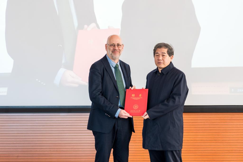 开幕式上,王华代表华体会(中国)致辞。他表示,华体会平台近年来在能源、生物、环境、材料等学科领域积极开展技术创新和应用研究,特别是在碳中和技术、绿色能源和低碳制造等方面取得了丰硕成果,已推动多个具有前瞻性的碳中和技术项目顺利实施,希望未来可以在碳中和与生物多样性双重目标的协调发展中寻求更多合作点。王华为施奈德教授颁发了客座教授聘书及《碳中和系统》期刊编委证书。