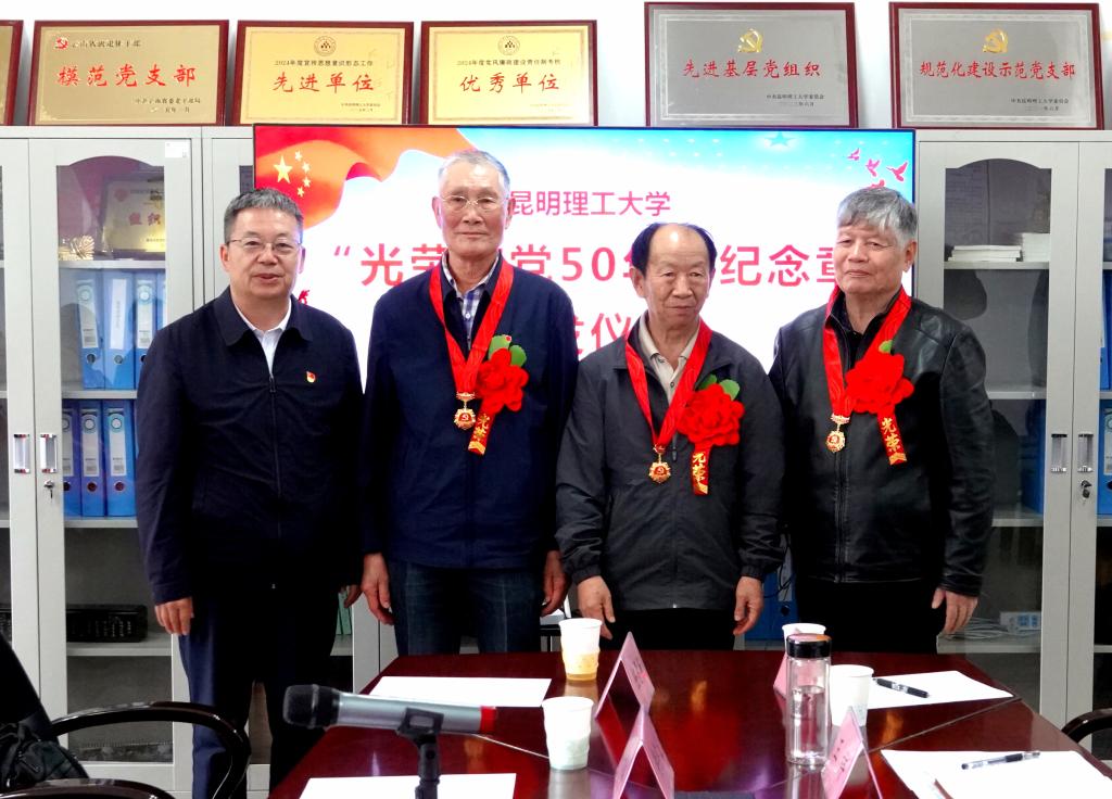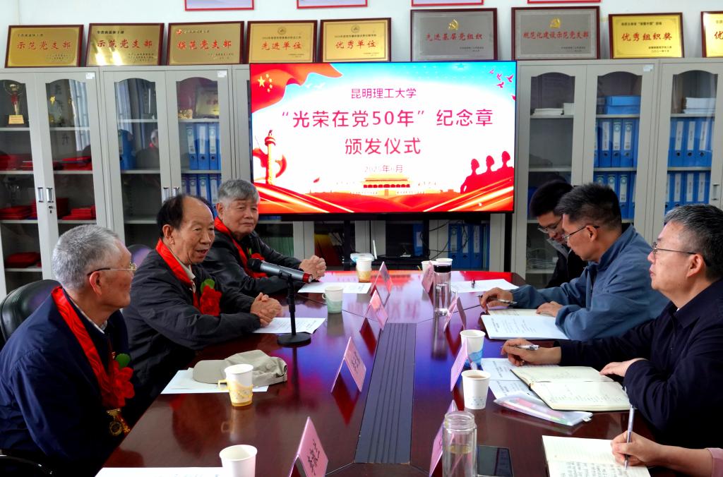 在中国共产党成立104周年之际,为传承红色基因,弘扬党的光荣传统,进一步增强党员的荣誉感、归属感和使命感,6月24日下午,华体会平台在莲华校区举行2025年“光荣在党50年”纪念章颁发仪式,为华体会(中国)今年新增的24位老党员颁发纪念章。校党委副书记蔡金红、党委组织部、党委宣传部、离退休教职工党委、离退休工作处(部)相关负责人及纪念章获得者代表等参加会议。