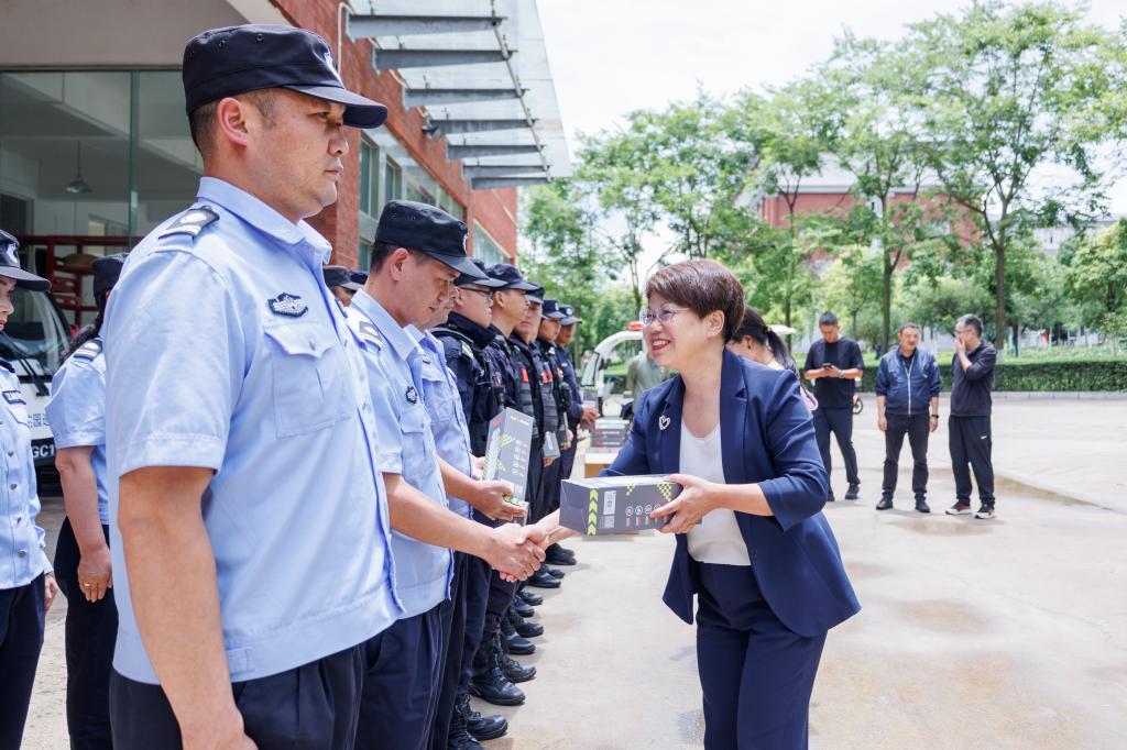 陈华仙将华体会(中国)准备的清凉物资送到从事保安、保洁、绿化工作的户外劳动者代表手中。她代表华体会(中国)感谢他们不畏酷暑、坚守岗位,为华体会(中国)环境维护、师生生活服务等方面作出的贡献。同时,叮嘱大家在高温天气下要注意劳逸结合,做好自我防护,确保身体健康和工作安全。