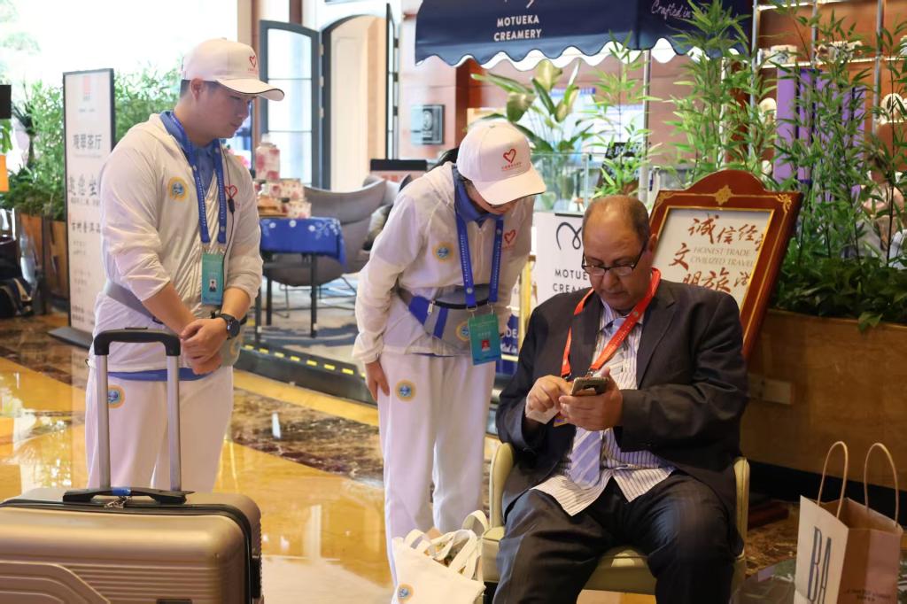 彰显青春风采 打造国际化服务标杆。会议期间,昆工志愿者以“开放、自信、青春”为名片,精准对接50架次航班、12国代表团,实现接待服务“零延误”;在主会场及展示区设置固定岗与流动岗,完成席位引导、设备调试、资料分发等标准化服务,保障会议流程顺畅有序;充分发挥“文化使者”作用,通过生动讲解云南风土人情、特色物产等,促成跨文化互动,让外宾在细节中感受“中国温度”、领略云南魅力。