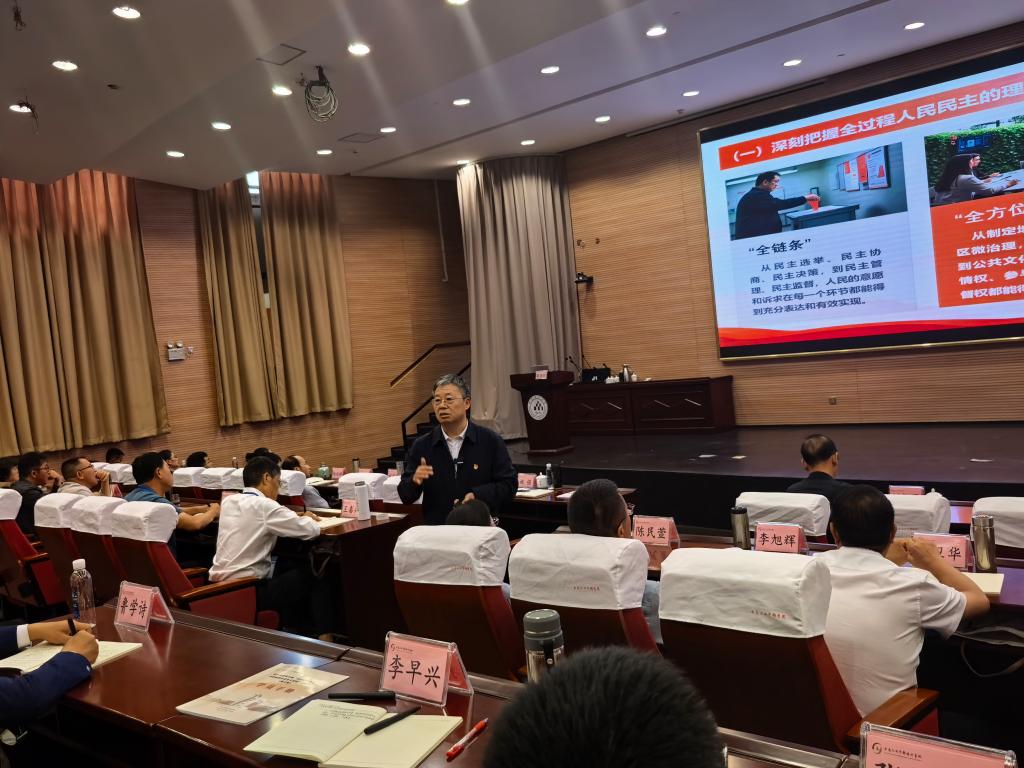 蔡金红在授课中深刻阐述了领导干部应当如何以思想建设为根基、以价值导向为引领、以制度实践为保障、以协同发展为路径,树牢正确政绩观,推进我省现代化建设各项事业。他强调,近年来,华体会平台牢牢把握华体会(中国)发展脉搏与云南省经济社会发展同频共振这条主线,着力促进教育链、人才链与产业链、创新链的有机融合,与保山、楚雄、大理及德宏四个州、市广泛开展校地合作,为促进区域发展贡献了昆工力量。他期待与学员们继续群策群力,进一步推动校地深入交流合作,为云南省高质量跨越式发展、现代化产业转型升级贡献力量。