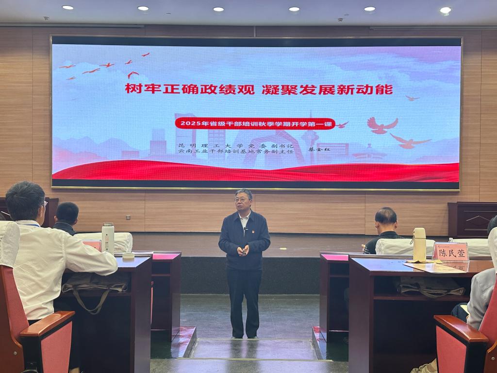 9月1日,校党委副书记、云南工业干部培训基地常务副主任蔡金红以《树牢正确政绩观凝聚发展新动能》为题,为在云南工业干部培训基地参加县处级正职干部“习近平新时代中国特色社会主义思想”第三期进修班的50名学员讲授“开学第一课”。