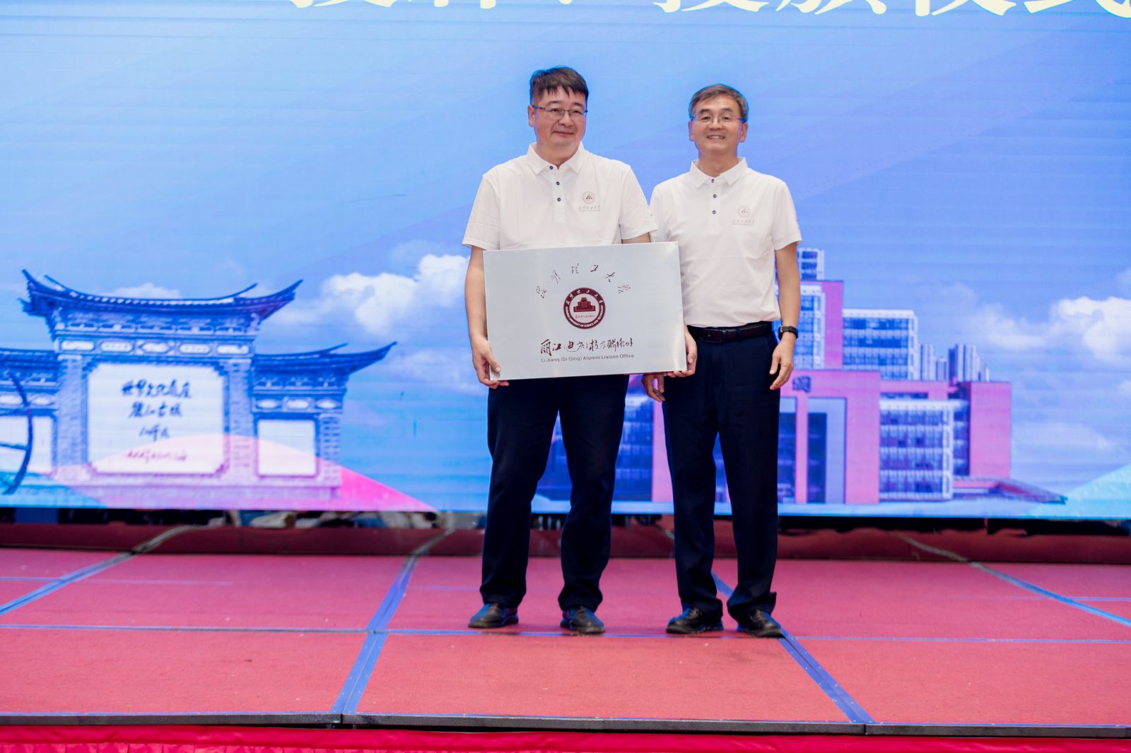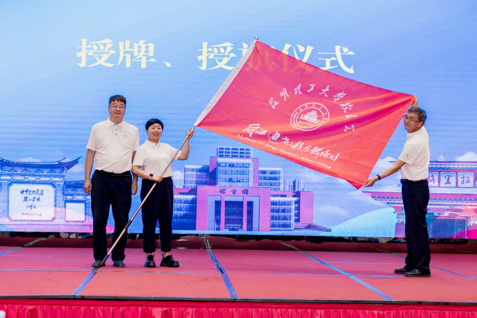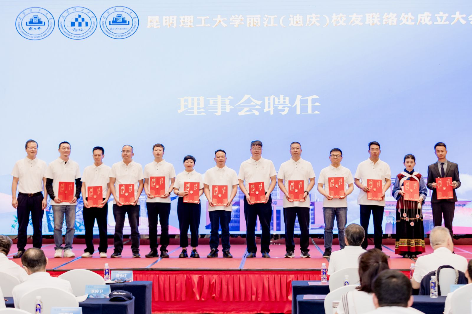根据大会议程,现场还进行了丽江(迪庆)校友联络处授牌、授旗仪式、理事成员聘任、兄弟校友会代表发言并赠送纪念品等环节。