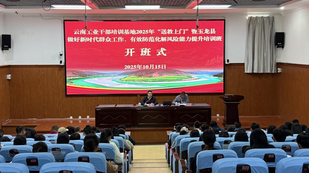 10月15日,云南工业干部培训基地2025年“送教上门”培训最后一期,暨玉龙纳西族自治县做好新时代群众工作、有效防范化解风险能力提升培训班在玉龙县委党校开班。