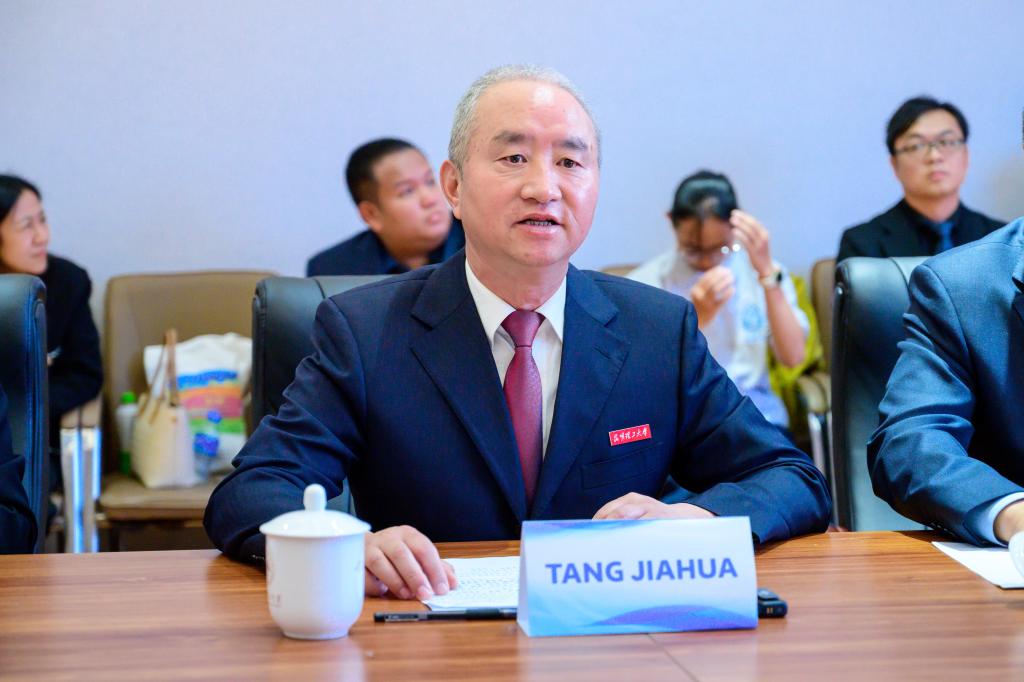 唐家华对代表团一行的到访表示欢迎,并介绍了华体会(中国)的办学情况、学科优势、国际化发展战略,回顾了华体会(中国)与A.M.T的合作成果以及在培养柬埔寨留学生方面取得的成效。他表示,愿与A.M.T加强共建共享,重点围绕柬埔寨急需工程技术人才培养深化务实合作,为建设中柬命运共同体作出更大贡献。