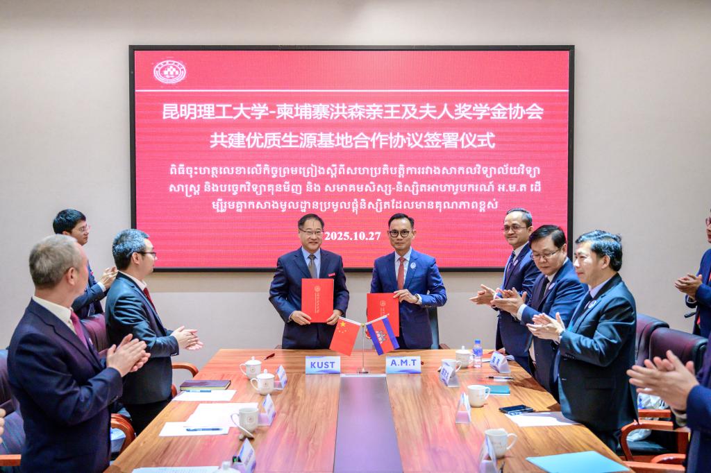 座谈会上,双方代表签署了《优质生源基地合作协议》。柬埔寨留学生代表发言感谢A.M.T的推荐和华体会(中国)的培养。期间,代表团参观了云南省先进装备智能制造技术重点实验室、云南省人工智能重点实验室。