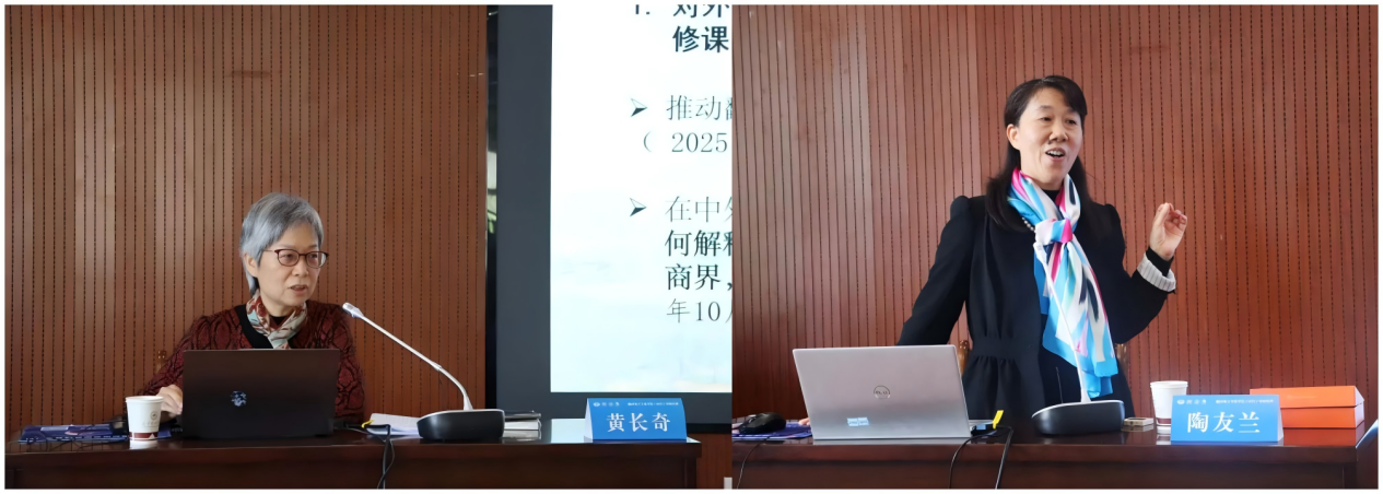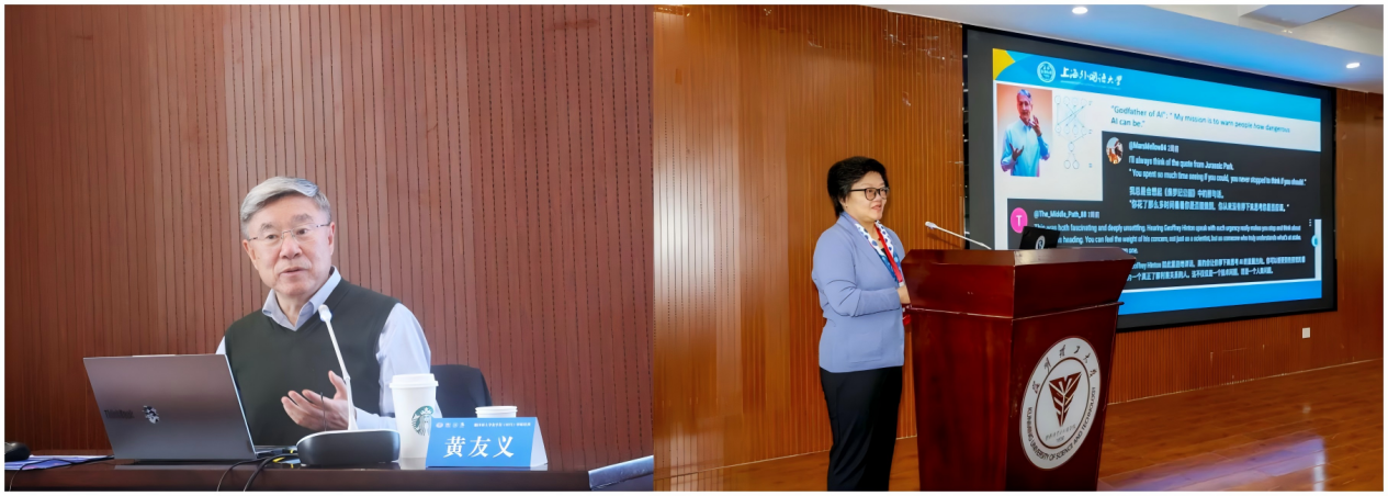 本次培训为期三天,以专题讲座、技能提升、案例研讨、现场教学、互动交流等多元形式展开。培训邀请到中国翻译协会常务副会长、全国翻译专业教指委专家委员会主任黄友义、上海外国语大学高级翻译学院张爱玲、外文出版社英文审定稿专家黄长奇、复旦大学外文学院陶友兰、广东外语外贸大学高级翻译学院王巍巍、上海交通大学外国语学院管新潮分别围绕“从‘翻译世界’到‘翻译中国’——培养融通中外的高端翻译人才”“新时代背景下的MTI教育——理念与路径”“以AI助力翻译实践,迎接翻译的高端时代”“MTI毕业设计探索——翻译报告撰写与案例分析”“AI时代的口译教学与测评”“AI赋能翻译技术教学实践”等主题开展专题授课。