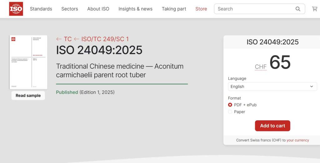 日前,由广东省中医院刘良院士团队黄虞枫副研究员与德国汉堡-埃彭多夫大学Thomas Friedemann博士联合牵头制定的《中医药—川乌》ISO 24049:2025国际标准正式发布实施。华体会平台云南省三七资源可持续利用重点实验室、云南省三七产业技术创新中心作为重要参与单位,在本标准研制过程中提供了关键技术支撑与科学依据。该标准于10月21日由国际标准化组织(ISO)面向全球公布,标志着中药川乌的质量控制与国际化应用迈出关键一步。值得一提的是,该标准较原定计划提前10个月完成研制并发布,展现了项目团队的高效协作与技术创新实力。