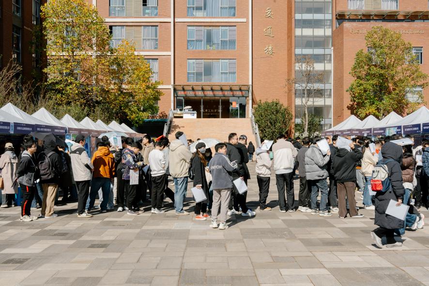 11月26日,由交通工程学院承办的“才聚交通 职引未来”2026届毕业生“交通类”专场招聘会在交通楼前小广场举行。本次招聘会采取“线下+线上”结合模式,聚焦交通行业发展需求与毕业生求职痛点,提供精准化、专业化就业服务,全力推动就业工作提质增效。