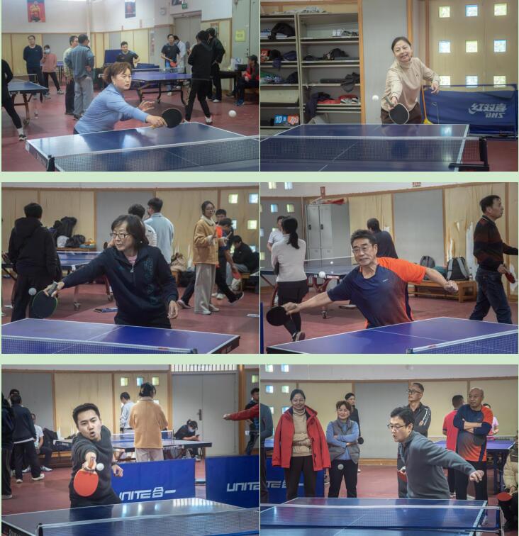 比赛当日下午14时正式开赛,从小组循环到交叉淘汰,直至最终决出冠军,全程在数小时内紧凑完成。赛场上,平日里深耕讲台、埋首科研的教职工们化身运动健将,一次次娴熟的发球、推挡、削球和扣杀,充分展现了精湛的球技与顽强的拼搏精神。球馆内喝彩声、加油声此起彼伏,气氛热烈而紧张。