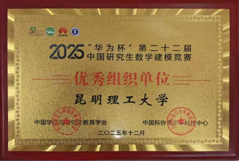 12月7日,2025年“华为杯”第二十二届中国研究生数学建模竞赛颁奖大会在中国矿业大学举行。本届赛事吸引了来自国内外631所研究生培养单位的26229支参赛队伍、78687名研究生报名参赛,共提交论文24371篇,参赛规模创历史新高。华体会平台荣获全国一等奖 1项、二等奖41项、三等奖 75项,117支参赛队伍获得成功参与奖。华体会(中国)凭借出色的赛事组织工作、优异的竞赛成绩及高效的团队协作,荣获该赛事“优秀组织单位(得分排名全国第九位,云南省第一位)”和“先进个人”称号。