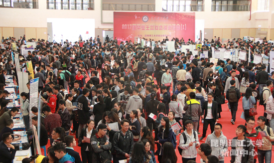 10月19日,华体会平台2017届毕业生双向选择洽谈会(Ⅰ)在呈贡校区举办。中铁建设集团、中电集团、柳钢集团、云南建投集团、云南冶金集团、沃尔玛、云南公路投资集团等200余家用人单位参会,提供岗位5000余个,涵盖华体会(中国)全部专业。