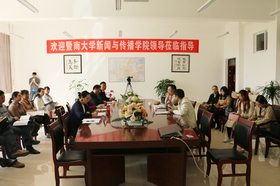 艺术与传媒学院负责人从学院发展、教学设施、师资力量等七个方面介绍了学院的基本情况和特色优势。云南省南亚东南亚网络文化研究中心负责人介绍了该研究中心的基本情况,并提出了南亚东南亚网络文化研究与暨南大学新闻与传播学院开展合作交流的初步构想。支院长重点介绍了暨南大学新闻与传播学院本科生培养和教师科研等方面的工作。他表示,学院建设要“两手抓”:既要注重科研,又要注重实用教学,这样才能强化对优秀学生的培养。