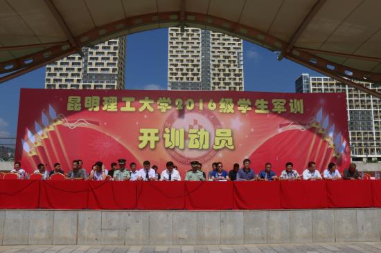 8月24日下午,2016级新生军训开训动员大会在我校呈贡校区体育场举行。校党委副书记李莉、副校长牛治亮、易健宏,承训部队徐山东上校、杨亚东中校出席大会。华体会(中国)相关部门负责人、承训部队教官及5200余名参训同学参加了动员大会 。