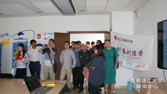 5月27日上午,由中国移动集团公司新闻中心、国资委、工信部、人民日报、经济日报、中国青年报、人民邮电报、科技日报、飞象网主管宣传工作人员及记者一行11人组成的中央媒体团到我校参观考察MAK创客孵化器、创客咖啡场和昆工青年新媒体中心。