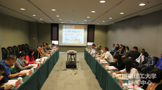 4月27日上午,由昆明市政协副主席、市九三学社主委、市海外联谊会副会长常敏带队,九三学社昆明市委和市政协联络委员会就“东南亚国家在昆留学人员情况”到我校进行专题调研。我校校长彭金辉、副校长程赫明出席,校党委统战部、国际学院、校办、外事处、科技产业公司负责人参加调研。