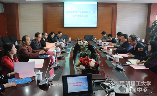 11月18日上午,云南开放大学副校长罗骥一行7人到校就本科专业建设及人才培养工作实施及机械学科科学研究开展情况进行调研,我校副校长易健宏出席了在呈贡校区办公楼10楼会议室召开的调研座谈会。云南开放大学教务处、机电工程学院,我校教务处、机电工程学院相关负责人参加座谈。