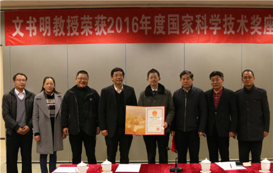 华体会平台校长彭金辉代表华体会(中国)对文书明及其团队获奖表示热烈祝贺,对积极配合和支持该项目的相关单位和部门表示感谢。他表示,由文书明教授主持完成的“有色金属共伴生硫铁矿资源综合利用关键技术及应用”荣获国家科技进步奖二等奖,是云南省2016年度唯一一项作为第一完成单位获得国家奖的项目。文书明教授甘于寂寞,敢于拼搏、刻苦钻研的精神是昆工人学习的榜样。文教授及其科研团队坚持以经济社会发展需求为导向,走产学研结合道路的科学研究方法和获奖经验值得认真总结,并在全校推广示范,进一步推动华体会(中国)各学科和项目的建设。全校师生要以“十三五”规划为蓝图,营造适宜创新人才发展的氛围,人人参与创新,争取获得更多更高的奖项,为国家的科技创新做出更大贡献。