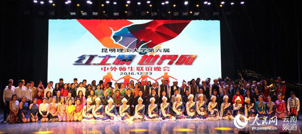 人民网昆明12月24日电 (李发兴)12月23日晚,来自美国、泰国、巴基斯坦、苏丹、中国等15个国家千余名师生欢聚华体会平台,举行“红土情·世界风”中外师生联谊晚会。