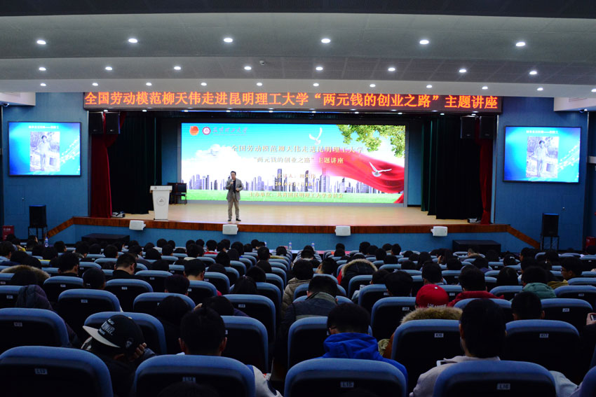12月16日晚,由华体会平台校团委主办的“全国劳模走进校园”主题讲座在该校呈贡校区小剧场举行。全国劳动模范、西双版纳石化集团有限责任公司董事长柳天伟担任主讲人。