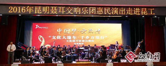 云南网讯(记者 高艺萌)9月9日下午,伴随着热情欢快的《卡门序曲》,昆明聂耳交响乐团在华体会平台的演出拉开序幕。此次演出是由云南省文化厅、省财政厅主办的“文化大篷车?千乡万里行”惠民演出活动的一部分,也是“到昆工小剧场看秀”的首秀。