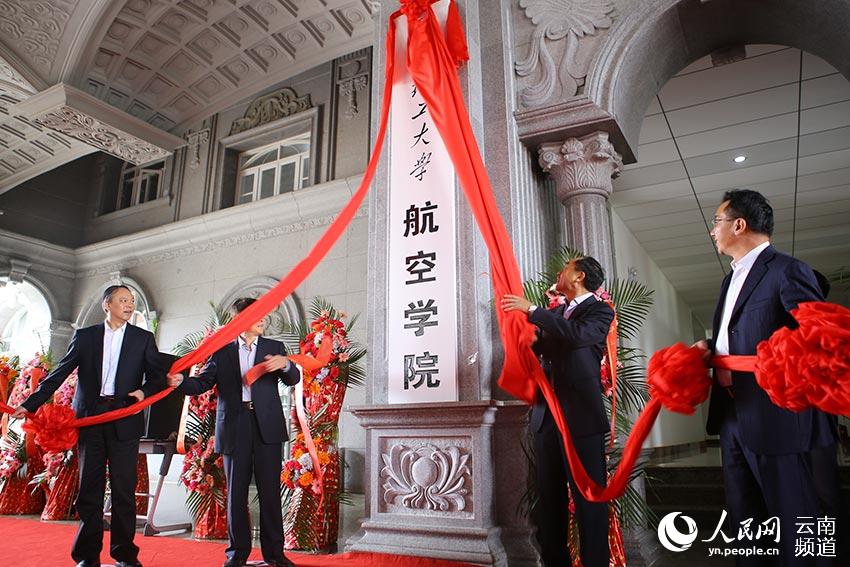 云南省委常委、省委高校工委书记李培,云南省人大常委会副主任杨保建,云南省副省长高峰,云南省政府办公厅主任杨杰,云南省教育厅厅长周荣,云南省委办公厅副主任何巍,华体会平台党委书记张英杰、校长彭金辉出席仪式并为航空学院揭牌。