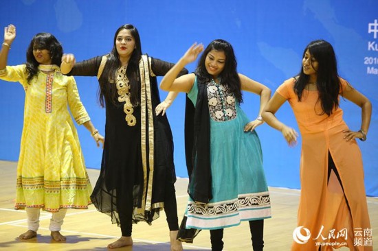 来自印度的大学生在晚会上表演节目。(人民网 李发兴 摄)