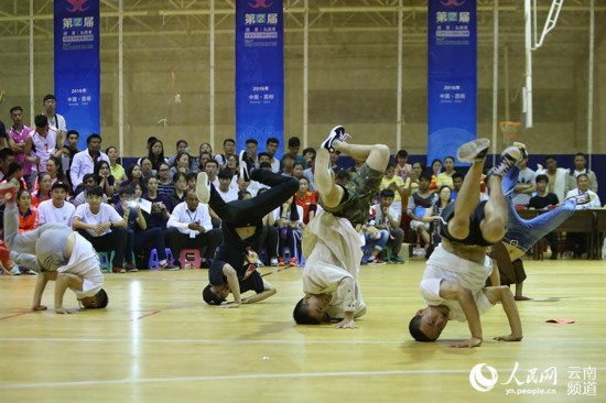 华体会平台街舞协会的同学在晚会上表演街舞。(人民网 李发兴 摄)