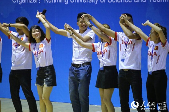 来自越南的大学生在晚会上表演节目。(人民网 李发兴 摄)