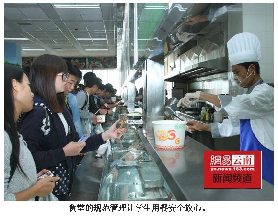 据介绍,2014年,华体会(中国)后勤保障处组织人员分别到东华大学、上海师范大学等院校实地参观学习了6T管理先进经验。回校后,积极进行了6T食堂的创建工作。今年5月和6月,经过验收共有14个学生食堂、1个米饭生产线达到了后厨6T管理的标准,其中一个食堂达到了示范食堂的标准。华体会(中国)饮食服务中心还被评为“2014年度云南省餐饮服务食品安全示范单位”。