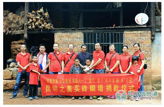 昆明信息港讯记者赵艳芳5月30日,“昆明之美”10名志愿者奔赴宣威市羊场镇英角村委会鲁车村民小组,为双胞胎付仕文、付仕武送去21116元捐款和图书、衣服等爱心物品,帮助他们实现六·一儿童节“家不再四面漏风”的愿望,给他们送去温暖与祝福。