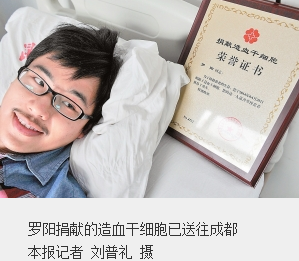 然而,今年1月,“意外”降临,罗阳再次被骨髓库通知初配成功,经过高分辨率配型后,罗阳被正式确定,可以为成都一名白血病患者捐赠造血干细胞。