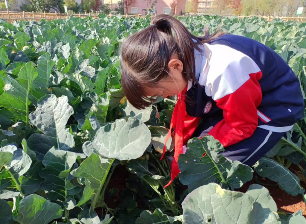 学生们很喜欢这块菜地,中午一有时间就会去打理自己种下的蔬菜,很多学生都快成“专业菜农”了。近期,学生种植的白菜、苦菜已开始收获,青花、卷心菜等蔬菜郁郁葱葱、长势喜人。