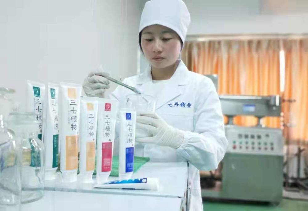 图为云南七丹药业股份有限公司的员工正利用三七提取物生产牙膏。 (杨朝文 供图)
