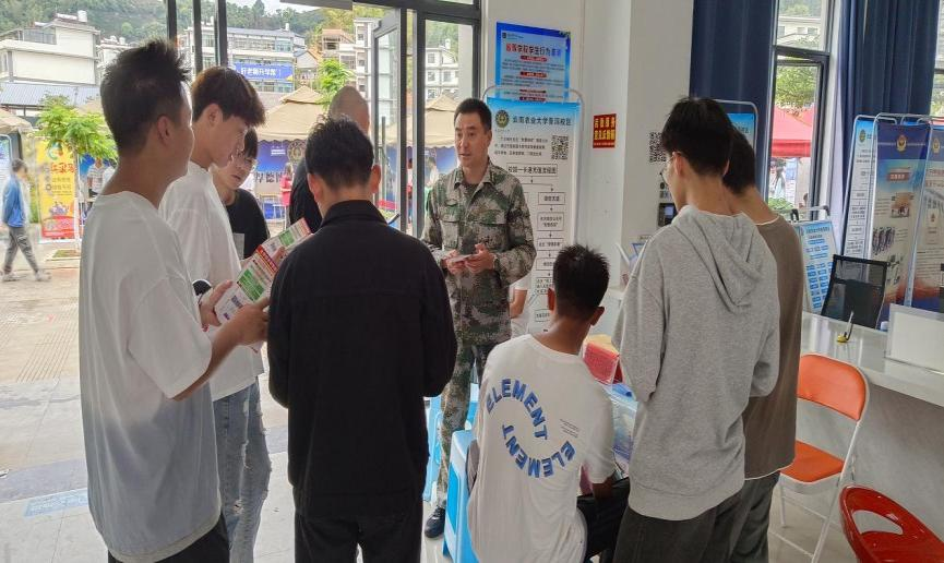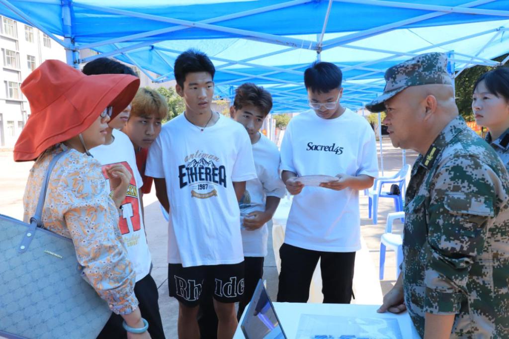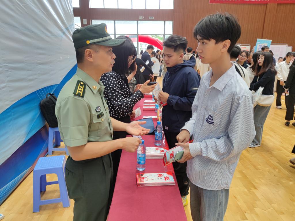文山市征兵办联合文山学院征兵站为前来参加“云南省2023届高校毕业生滇东南专场招聘会”的同学进行政策讲解,答疑解惑,积极动员大学生踊跃报名参军。