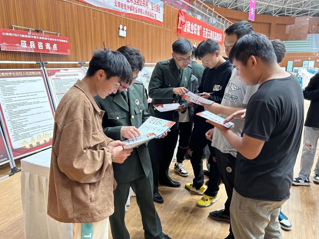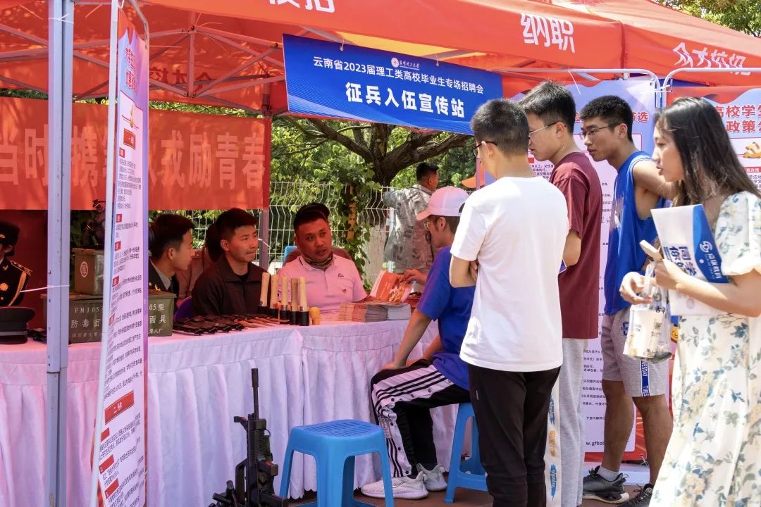 华体会平台国防后备营在“云南省2023届理工类高校毕业生专场招聘会”现场专门设置“参军入伍征兵政策咨询点”。此举旨在积极响应国家号召,提高兵员征集质量,鼓励优秀毕业学子携笔从戎。