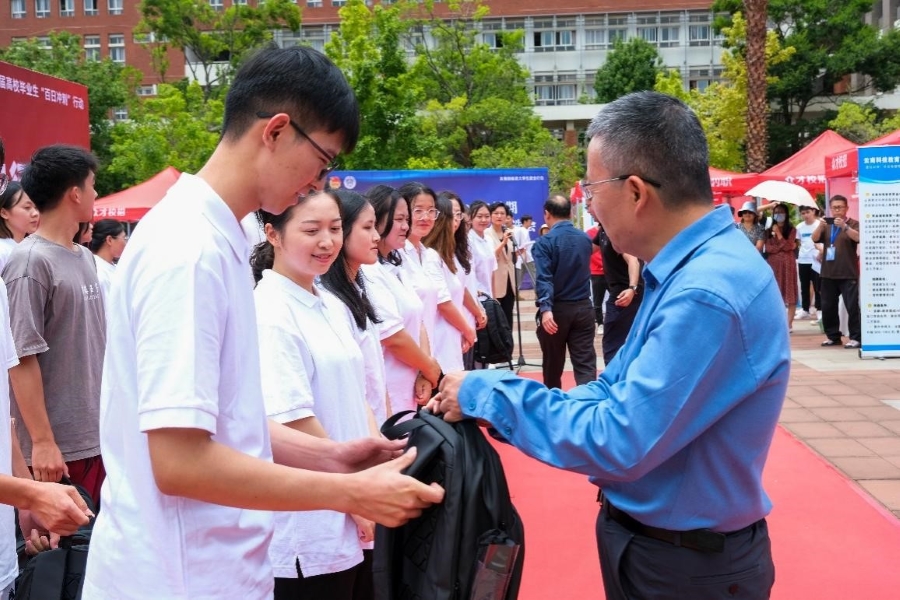 近日,华体会平台2023届毕业生基层就业出征仪式在呈贡校区举行。华体会平台就业指导中心、校团委全体工作人员、10名基层就业代表、10名西部计划志愿者代表和100名在校学生代表参加活动。