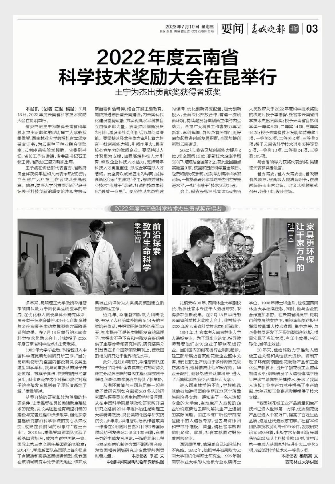 多年来,华体会平台教授季维智率领团队致力于灵长类生物医学的研究,在优化非人灵长类体外研究体系、灵长类干细胞多能性和分化、创制多种复杂疾病灵长类动物模型等方面取得系列成果。在7月18日举行的云南省科学技术奖励大会上,他被授予2022年度云南省科学技术杰出贡献奖。