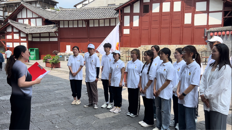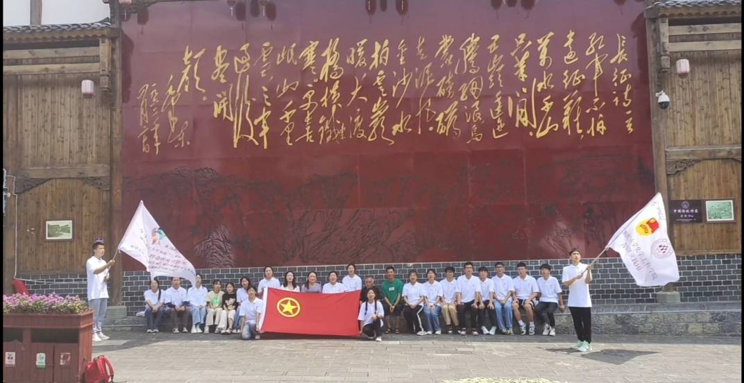 接着,在扎西会议旧址前,实践团全体党员在党委副书记宁玲的带领下重温入党誓词。在威信老街街道上,宁副书记给全体实践团成员讲了一堂以“弘扬扎西精神,引领青年学习贯彻党的二十大精神走深走实”为主题的党课,实践团队全体成员一起朗诵《七律·长征》。最后,社会实践团成员来到威信县水田关口坳,开始踏寻红色足迹,重走红军长征路,并进行红色歌曲传唱活动。