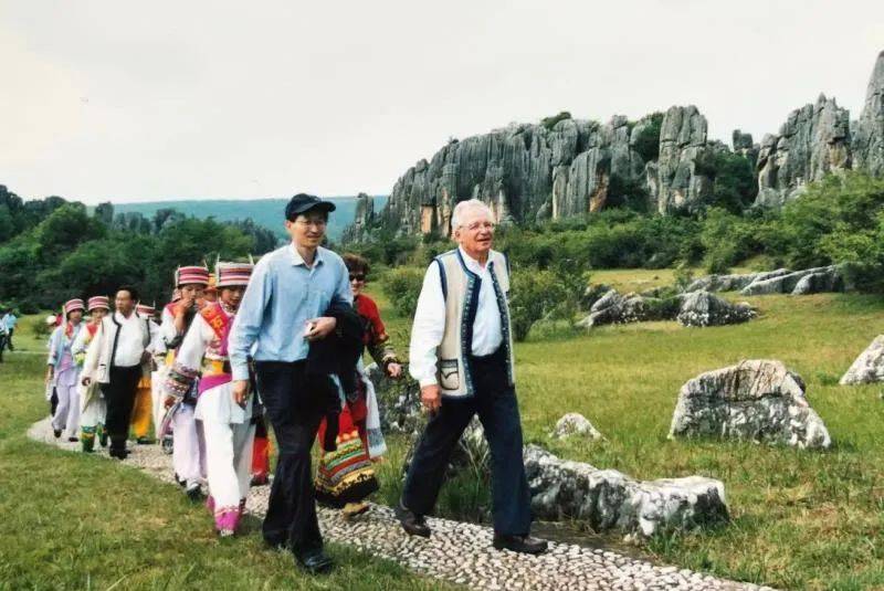 梁永宁教授(前左一)陪外国专家在石林考察